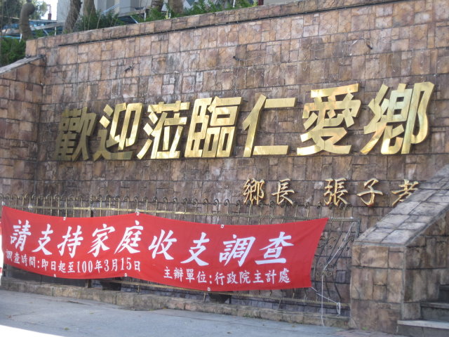 迎面而來的是斗大標語『 歡迎蒞臨仁愛鄉 』